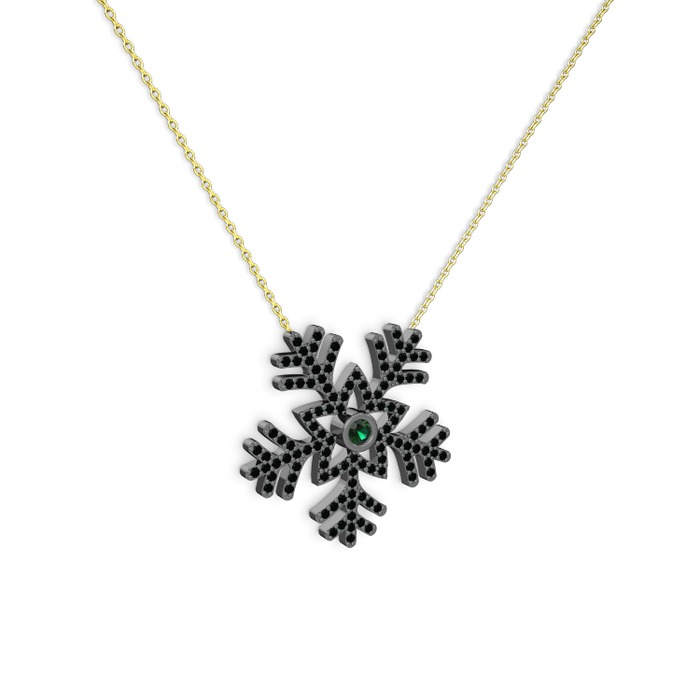 Yeşil kuvars ve siyah zirkon 925 ayar siyah rodyum kaplama gümüş kolye (40 cm altın rolo zincir)