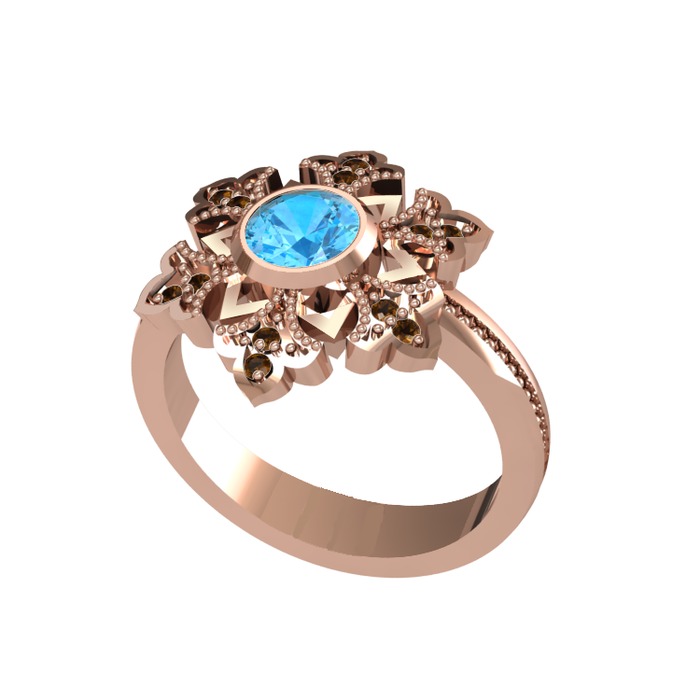 Akuamarin ve dumanlı kuvars 925 ayar rose altın kaplama gümüş yüzük