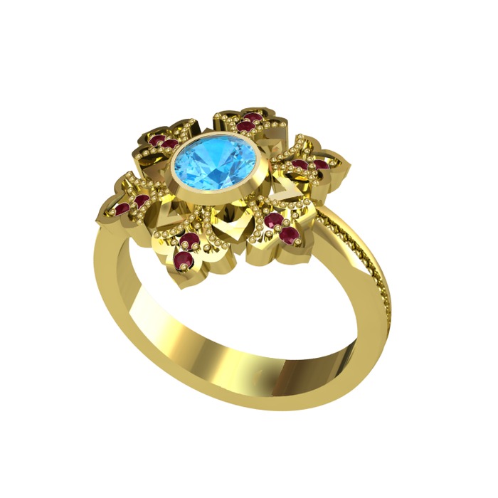 Akuamarin ve kök yakut 925 ayar altın kaplama gümüş yüzük