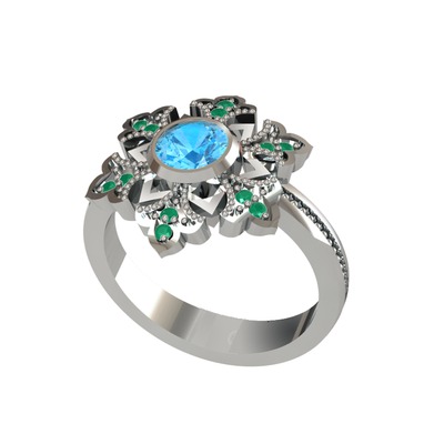 Akuamarin ve kök zümrüt 925 ayar gümüş yüzük