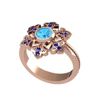 Akuamarin ve lab safir 14 ayar rose altın yüzük