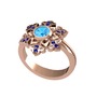 Akuamarin ve lab safir 8 ayar rose altın yüzük