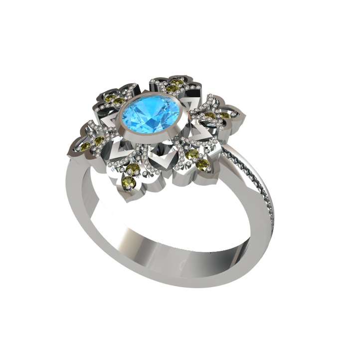 Akuamarin ve peridot 925 ayar gümüş yüzük