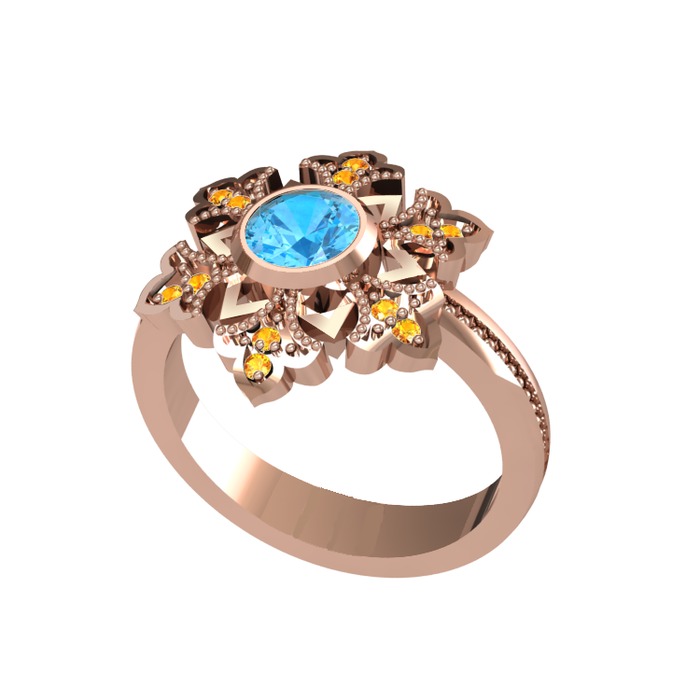 Akuamarin ve sitrin 14 ayar rose altın yüzük