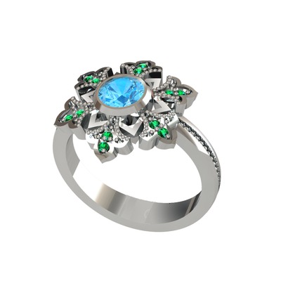 Akuamarin ve yeşil kuvars 18 ayar beyaz altın yüzük