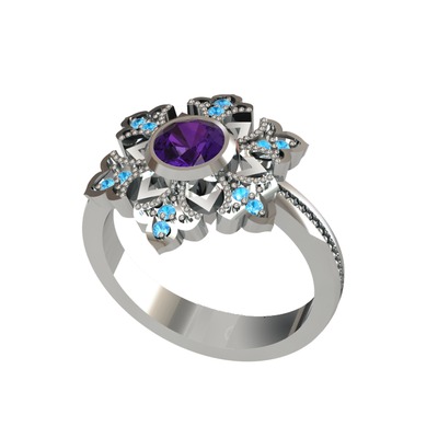Ametist ve akuamarin 18 ayar beyaz altın yüzük