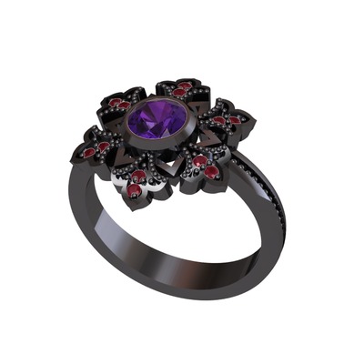 Ametist ve kök yakut 925 ayar siyah rodyum kaplama gümüş yüzük