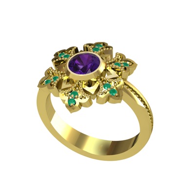 Ametist ve kök zümrüt 925 ayar altın kaplama gümüş yüzük