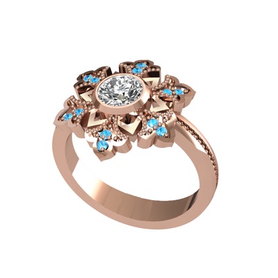 Beyaz zirkon ve akuamarin 18 ayar rose altın yüzük