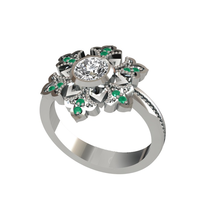 Beyaz zirkon ve kök zümrüt 18 ayar beyaz altın yüzük