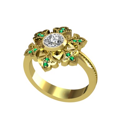 Beyaz zirkon ve yeşil kuvars 925 ayar altın kaplama gümüş yüzük