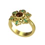Dumanlı kuvars ve kök zümrüt 18 ayar altın yüzük
