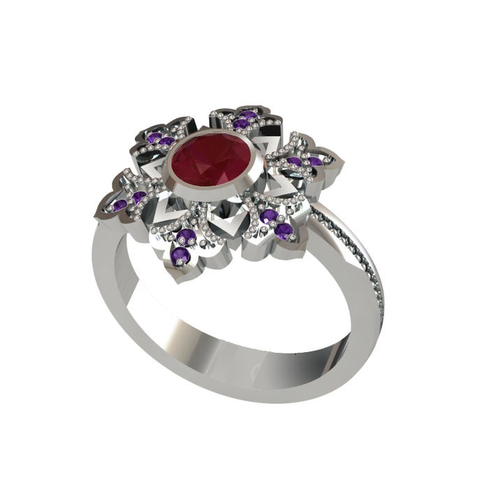 Kök yakut ve ametist 925 ayar gümüş yüzük