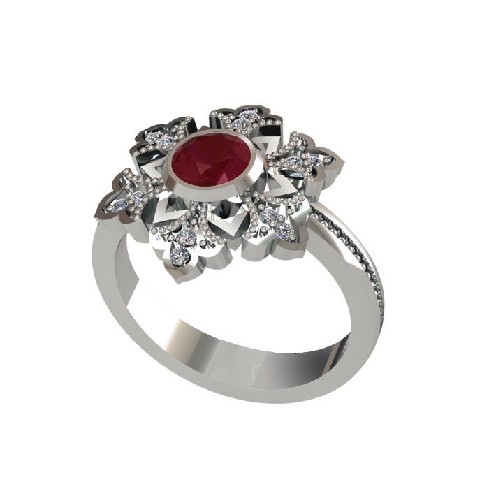 Kök yakut ve pırlanta 18 ayar beyaz altın yüzük (0.132 karat)