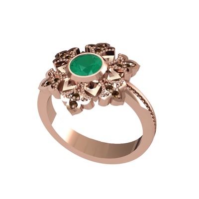 Kök zümrüt ve dumanlı kuvars 925 ayar rose altın kaplama gümüş yüzük