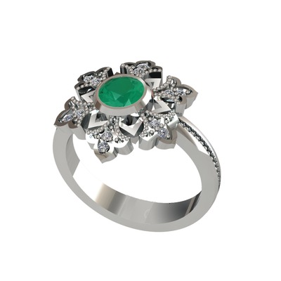 Kök zümrüt ve pırlanta 925 ayar gümüş yüzük (0.132 karat)