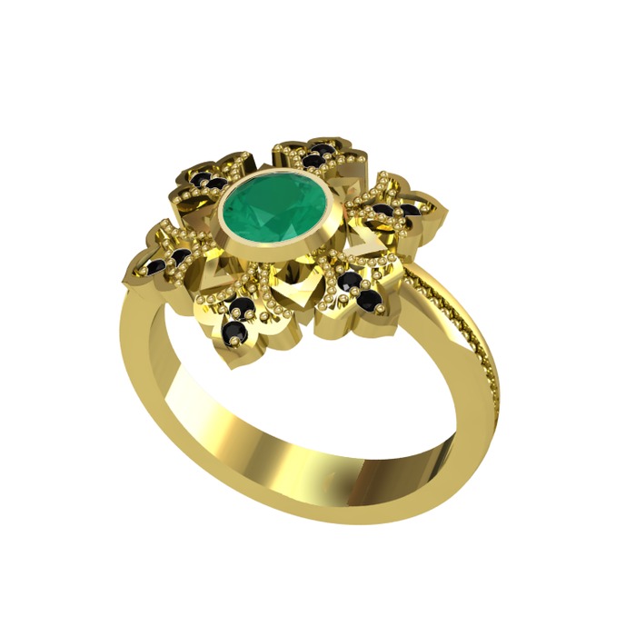 Kök zümrüt ve siyah zirkon 14 ayar altın yüzük