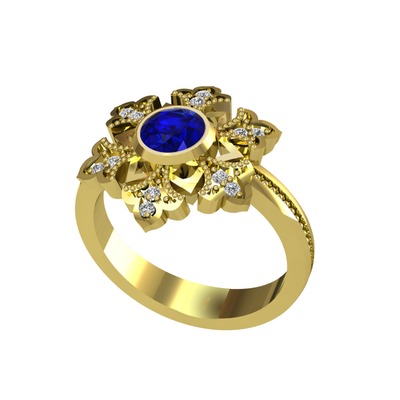 Lab safir ve beyaz zirkon 18 ayar altın yüzük