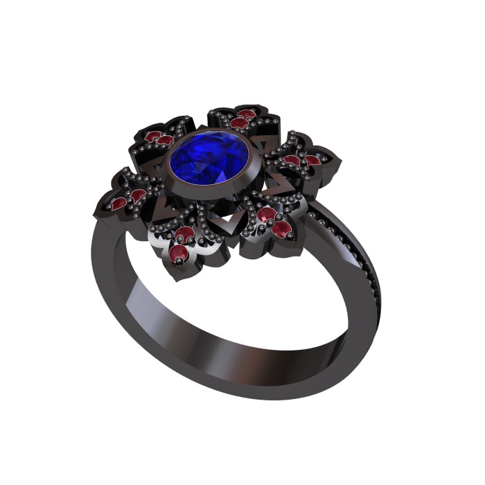 Lab safir ve kök yakut 925 ayar siyah rodyum kaplama gümüş yüzük