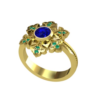 Lab safir ve kök zümrüt 14 ayar altın yüzük