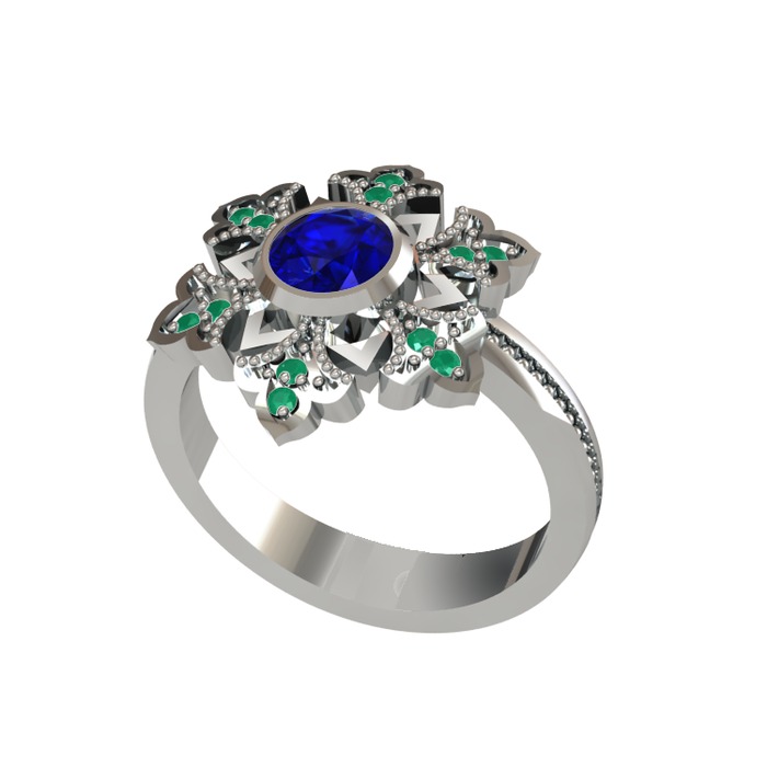 Lab safir ve kök zümrüt 18 ayar beyaz altın yüzük