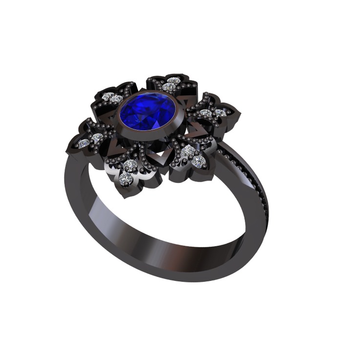 Lab safir ve pırlanta 925 ayar siyah rodyum kaplama gümüş yüzük (0.132 karat)