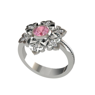 Pembe kuvars ve beyaz zirkon 8 ayar beyaz altın yüzük