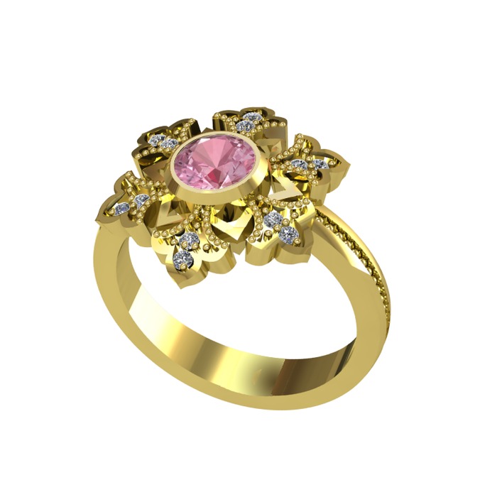 Pembe kuvars ve pırlanta 18 ayar altın yüzük (0.132 karat)