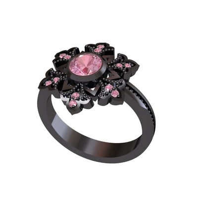 Pembe kuvars 925 ayar siyah rodyum kaplama gümüş yüzük