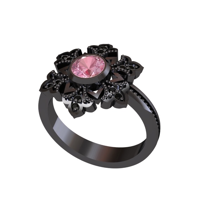 Pembe kuvars ve siyah zirkon 925 ayar siyah rodyum kaplama gümüş yüzük