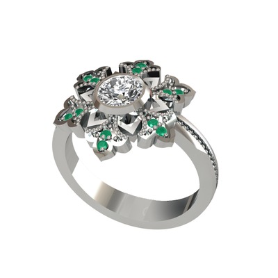 Pırlanta ve kök zümrüt 18 ayar beyaz altın yüzük (0.66 karat)
