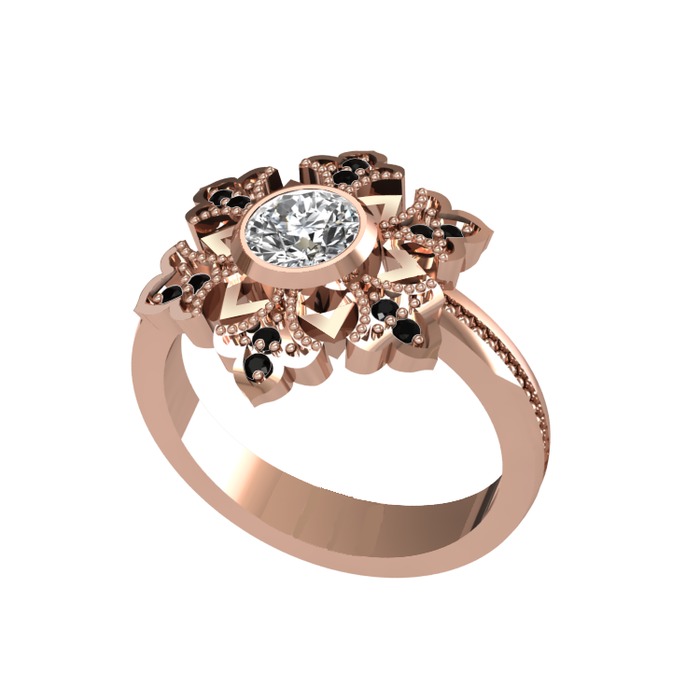 Pırlanta ve siyah zirkon 8 ayar rose altın yüzük (0.66 karat)