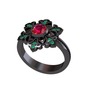 Rodolit garnet ve kök zümrüt 925 ayar siyah rodyum kaplama gümüş yüzük