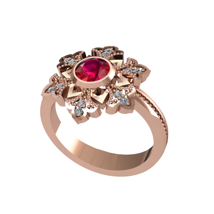 Rodolit garnet ve pırlanta 925 ayar rose altın kaplama gümüş yüzük (0.132 karat)