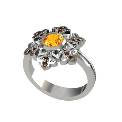 Sitrin ve dumanlı kuvars 14 ayar beyaz altın yüzük
