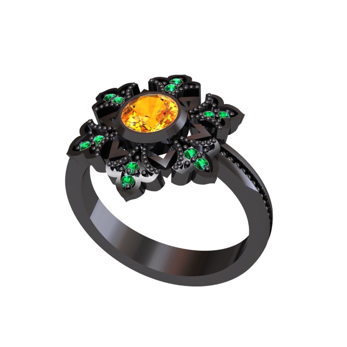 Sitrin ve yeşil kuvars 925 ayar siyah rodyum kaplama gümüş yüzük