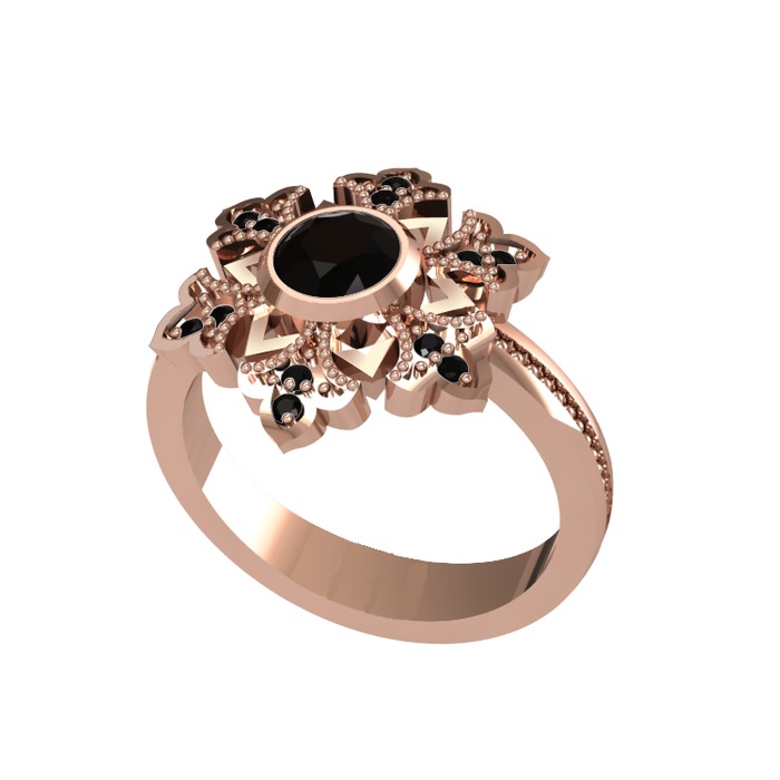 Siyah zirkon 18 ayar rose altın yüzük