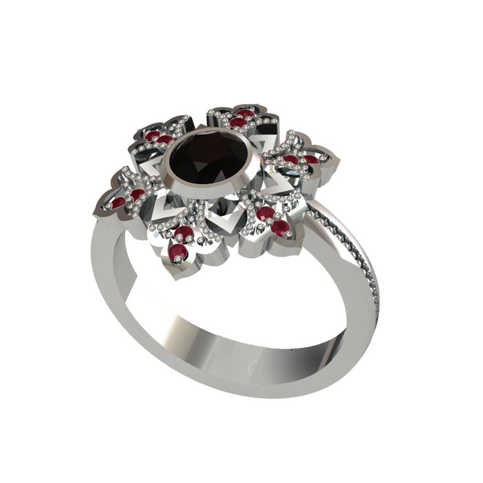 Siyah zirkon ve kök yakut 14 ayar beyaz altın yüzük