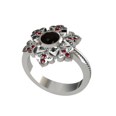 Siyah zirkon ve kök yakut 8 ayar beyaz altın yüzük