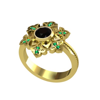Siyah zirkon ve yeşil kuvars 14 ayar altın yüzük