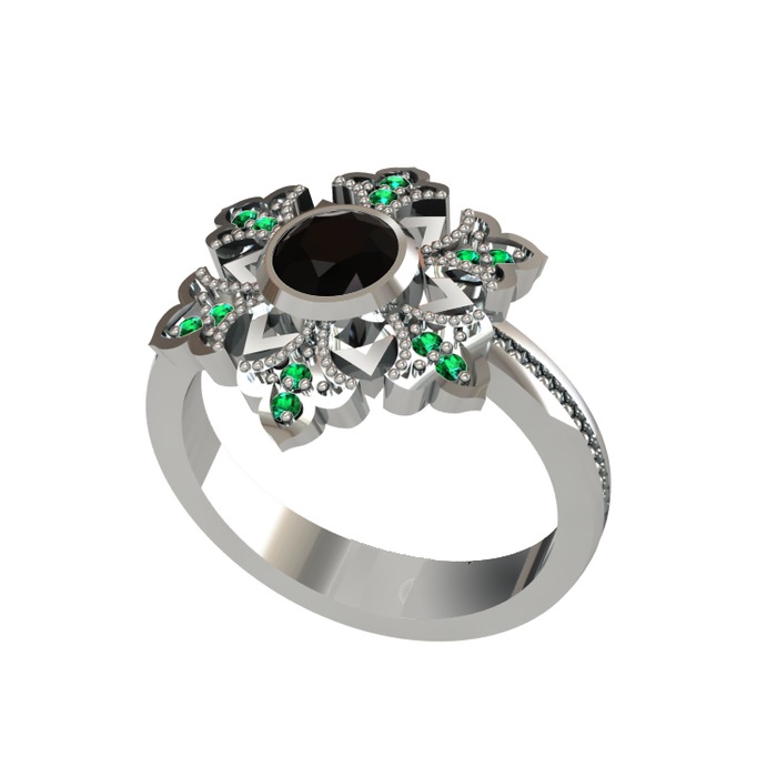 Siyah zirkon ve yeşil kuvars 925 ayar gümüş yüzük