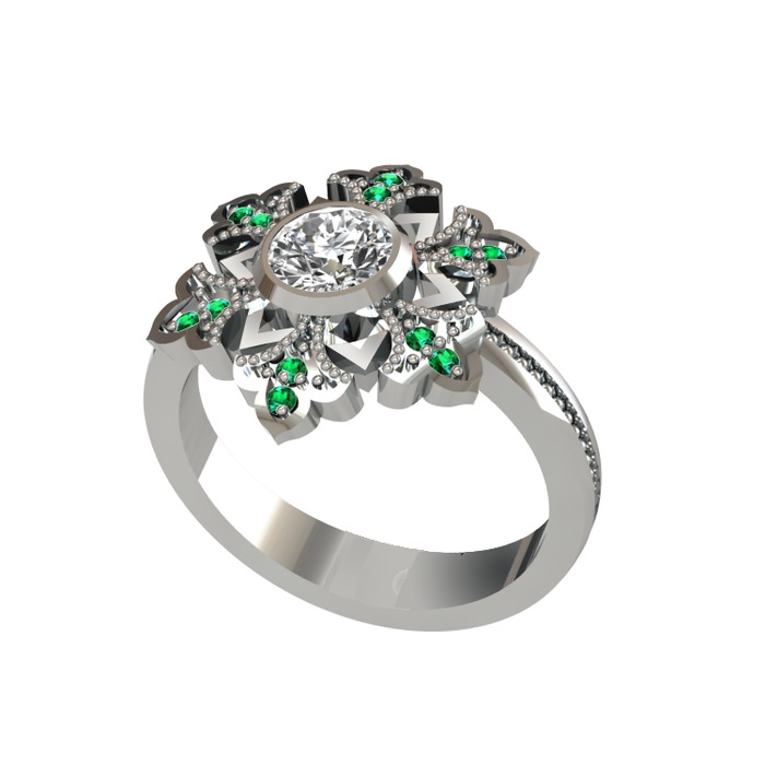 Swarovski ve yeşil kuvars 18 ayar beyaz altın yüzük