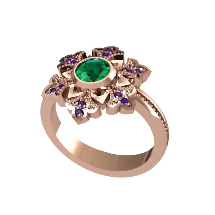 Yeşil kuvars ve ametist 8 ayar rose altın yüzük