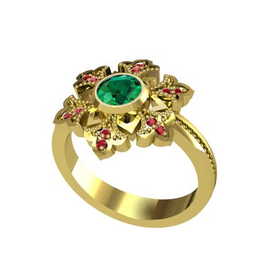 Yeşil kuvars ve garnet 8 ayar altın yüzük