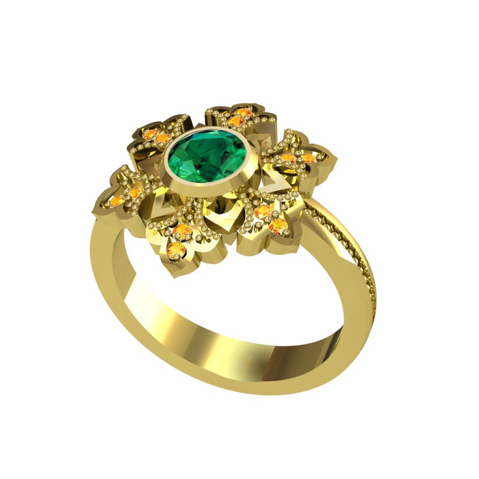 Yeşil kuvars ve sitrin 925 ayar altın kaplama gümüş yüzük