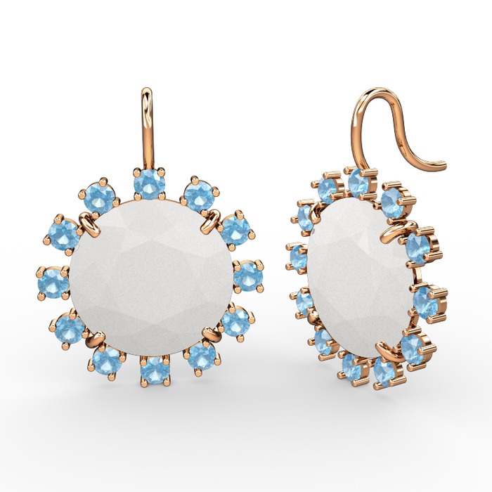 Akuamarin ve beyaz akrilik 18 ayar rose altın küpe
