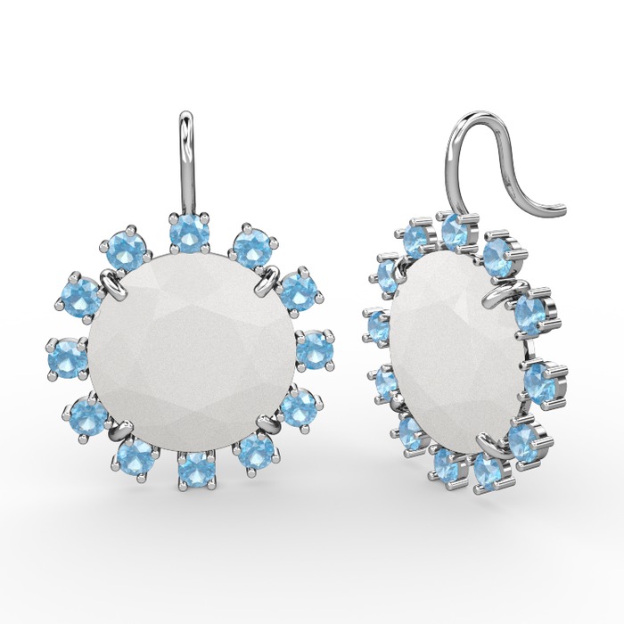 Akuamarin ve beyaz akrilik 8 ayar beyaz altın küpe