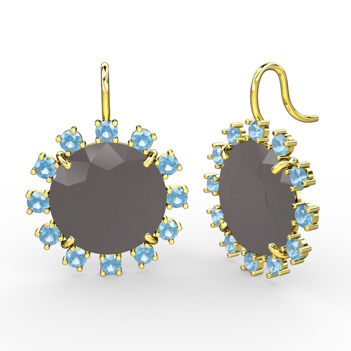 Akuamarin ve füme akrilik 925 ayar altın kaplama gümüş küpe