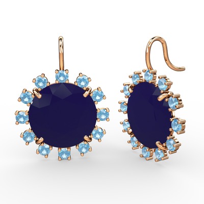 Akuamarin ve lacivert akrilik 925 ayar rose altın kaplama gümüş küpe