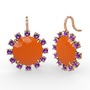 Ametist ve neon turuncu akrilik 8 ayar rose altın küpe